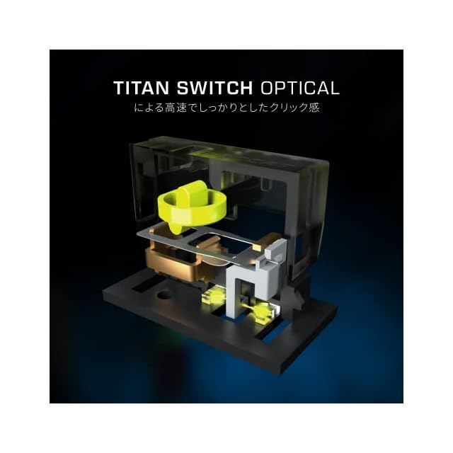 TITAN SWITCH OPTICAL。1億回のクリック寿命を誇りながら驚異的な速度と精度を実現し、対戦での優位性を確保します。