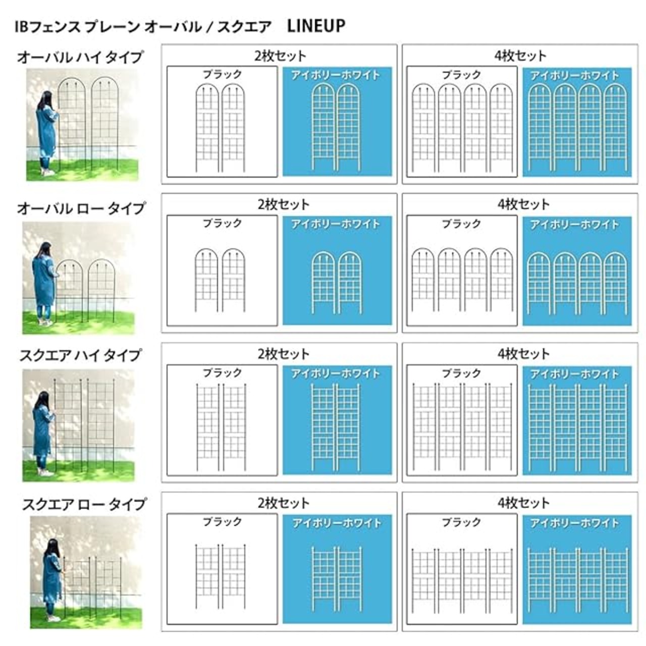 ガーデンガーデン お庭をエレガントに彩る IBフェンス プレーン オーバル ハイタイプ 高さ203.5cm×幅52cm 2枚セット アイボリーホワイト アイアントレリス IBF-PO208WHT-2P | ascend