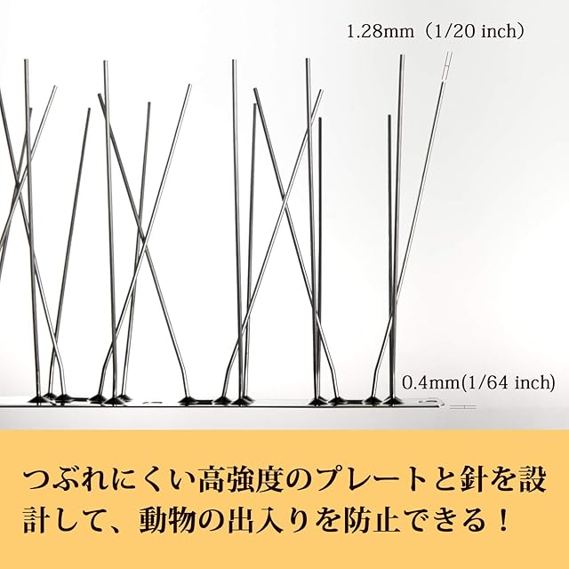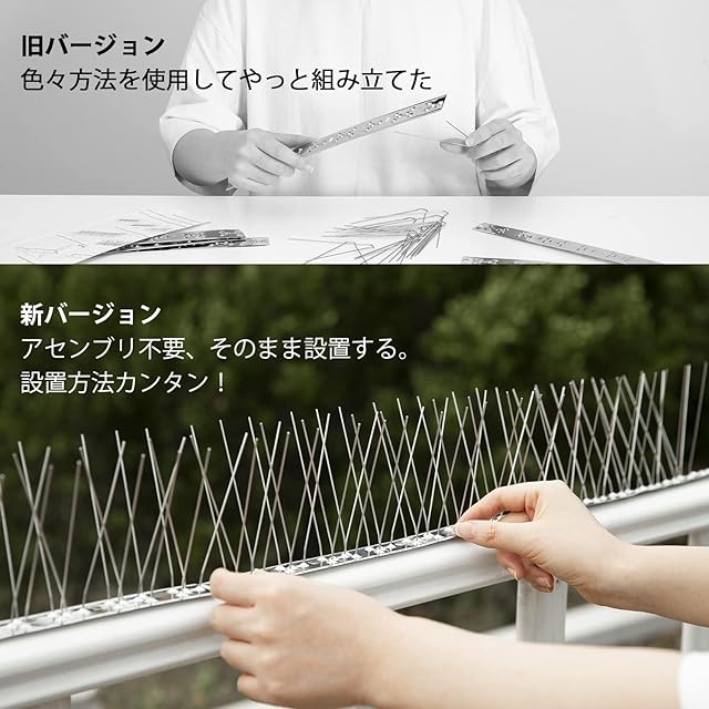 [どこでもタイプ] 鳥のフン害、騒音被害や巣作りを防ぐため、猫の侵入を防ぐには、このステンレス鳥よけで、衛生的な空間を作ります。それに、目立ちにくくて、設置後の景観も損ねません。屋上、ベランダ、手すり、TVアンテナや洗濯物干しなど様々な場所に簡単に設置できます。