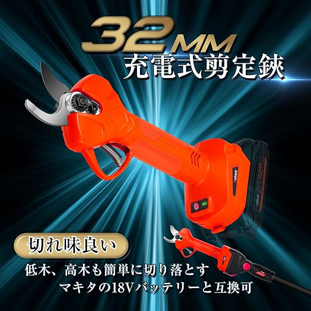 Kebtek電動剪定鋏 切断径32mm コードレス 充電式剪定ばさみ マキタ18Vバッテリーと互換可 電動 園芸はさみ LCD切断回数と残量表示 日本語取扱説明書付き 品番B05532 (本体のみ、バッテリーは別売り) | ascend