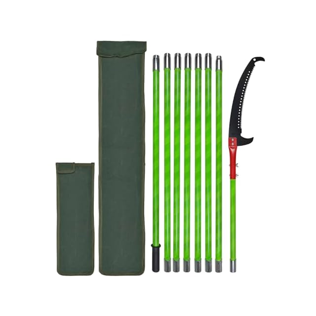 8メートルの枝切りポール:8メートルまで伸びる頑丈なツリートリミングシステムで、高い枝をすばやく簡単に切ることができます。木の高さに合わせてポールの長さを調整できます