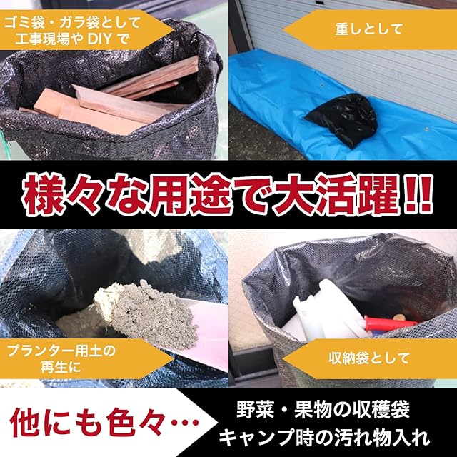 災害対策、長期土塁、その他ガラ袋、重し、土の保管、運搬、汚れ物の収納袋、プランター土の再生等、幅広い用途にお使いいただけます。