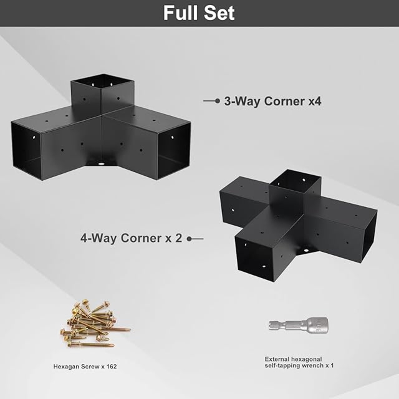 Grehitk パーゴラキット パーゴラブラケット 3ウェイブラケットと4ウェイブラケットキット 木工DIYポストベース用 ガゼボ用木製梁 パティオパーゴラ ログキャビン 屋外パーゴラ金具 4x4材用