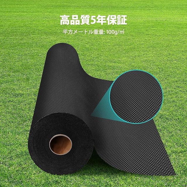 【耐用5年】2024年最新の防草シートは高品質ポリプロピレン製で面密度100g/㎡(UV耐候剤入り)で、従来の雑草防止シートより厚みがあり、破れにくいです