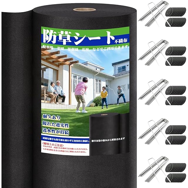 【耐久あり】高面密度100g/m²の高品質ポリプロピレン(UV耐候剤配合)を使用し、従来の除草シートに比べて厚みがあり、破れにくいです。雑草や雑草問題を除去する必要がなく、約10年の寿命があります