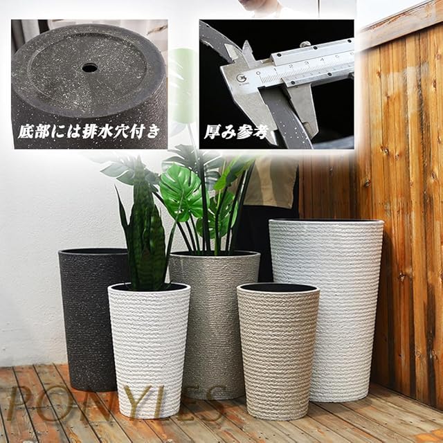 PonyLes プランター 大型 植木鉢 おしゃれ 受け皿付き 軽量 屋内 屋外用 プランター 深型 高さ52cm ガーデニング 現代風 軽量 排水穴 通気透水 シンプル インテリア 部屋 オフィス 屋内 屋外用 (M,ブラック) | ascend