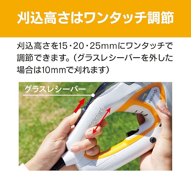 刈込み高さ調節:10・15・20・25mm (※10mmはグラスレシーバ取外し時)