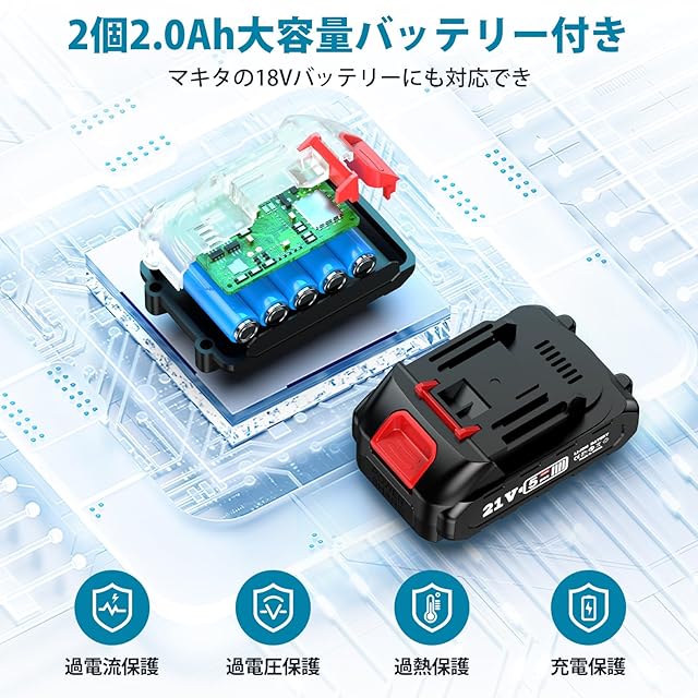 【大容量バッテリー 2 個付き & マキタ 18V バッテリー対応】Elikliv の電動ヘッジトリマーは大容量リチウムイオンバッテリーを 2 個付属しており、交互作業が非常に便利です。これにより、8 時間以上の作業を楽に行うことができます。それに、このヘッジトリマーは Elikliv のバッテリーに加えて、マキタ 18V バッテリーの BL1820b、BL1830、BL1840、BL1850 などのモデルにも対応しています。