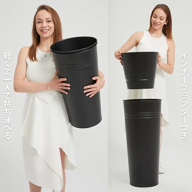 この鉢は一般的には深くて葉が広がるタイプにフィットします。室内には一般的な観葉植物を植える大型プランターとしてだけでなく、鉢カバーとしても、上にフェイクグリーンや人工観葉植物などのデコレーションにも適合します。また、小物を飾ったり、収納もできます。