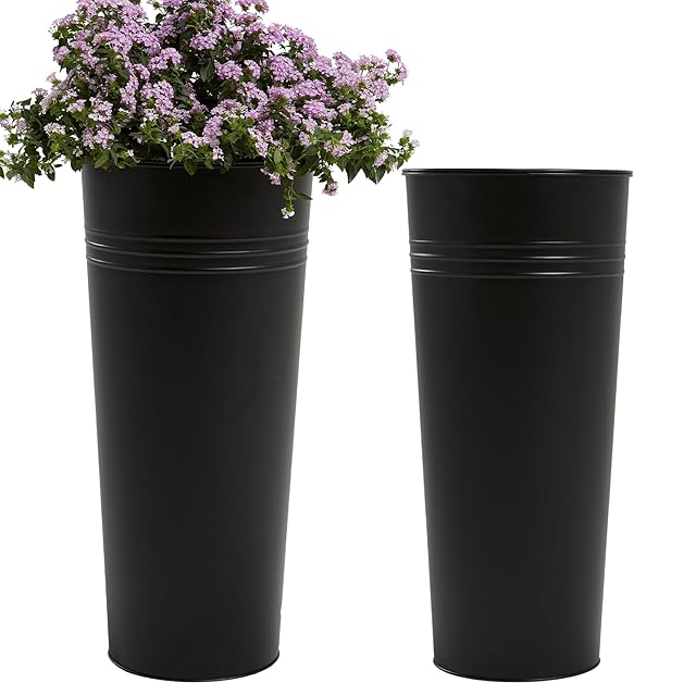 Worth 植木鉢 大型 穴なし アイアン製 インナープランターつき 水切り皿つき 吸水ひもつき フェイクグリーン装飾用 人工観葉植物用 インテリア オフィス用 屋内用 大型プランター カバー 深型 軽量 鉄製 おしゃれ アンティーク 栽培 屋外 観葉植物 鉢 グレー 56cm+56cm 2個セット