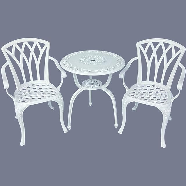 クラシックなデザイン:伝統的な編み込み模様のアームチェアとテーブルで、庭やパティオに上品な雰囲気を添えます。