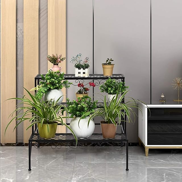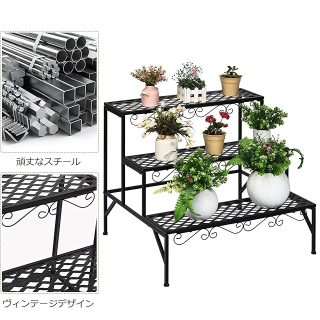 TANGKULA ガーデンラック フラワースタンド 鉄製 アイビースタンド 園芸ラック フラワーラック 盆栽棚 植物棚 鉢植え スタンド 花台 アイアン ガーデン用品 おしゃれ 防サビ (3段-小) | ascend