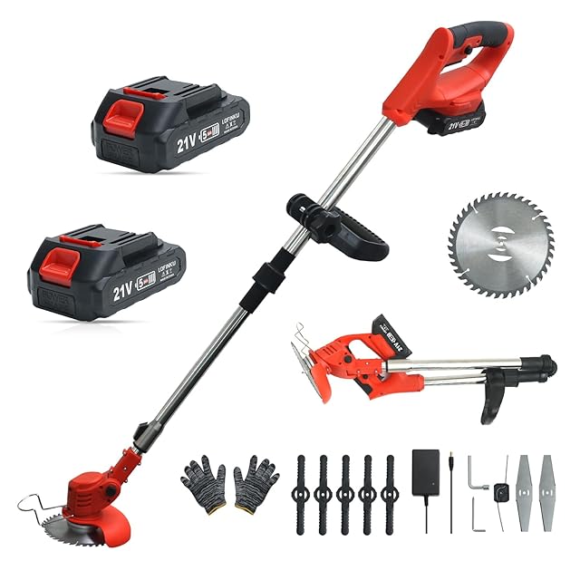 【ワイヤレスの自由、効率的な充電式草刈り機のパワー】 充電式草刈り機は、束縛のない刈り込み体験を提供します!コンセントに縛られることをおさらばし、21Vバッテリー+銅製高効率モーターが、より大きなパワーと高効率の草刈り機としての性能を発揮します。充電式草刈り機は、1回の充電で、駐車場10台分の草刈り作業を簡単に完了できます。