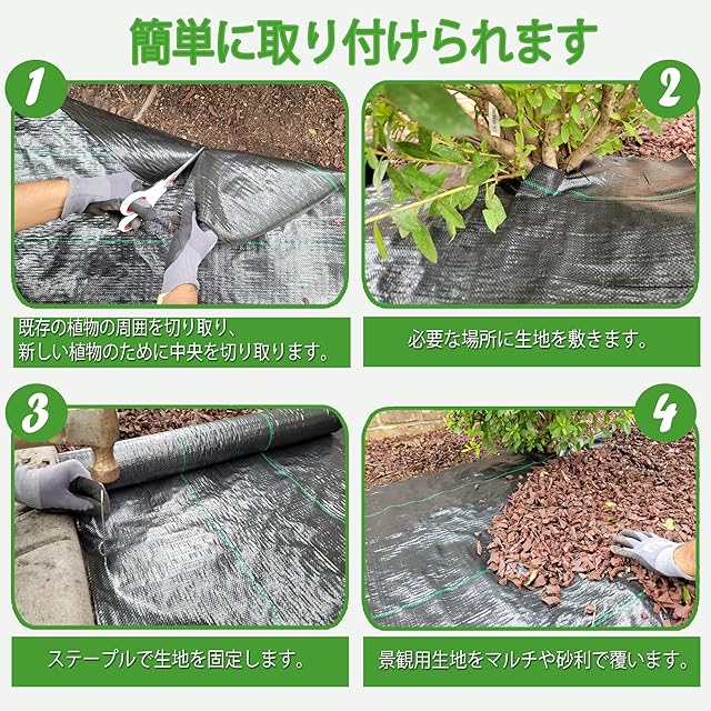 優れた品質:AGGAFA造園用防草製品は、100%バージン原材料で作られており、プレミアム品質を確保し、市場で一流の製品をお届けします。 リサイクル素材とバージン素材の混合は行っておりません。