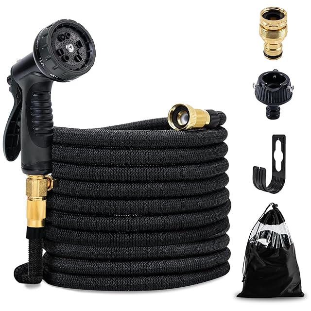 Goture ホース 散水ホース 伸縮ホース 3倍伸張可能 8種類のスプリンクラー機能 7.5m 3750Dポリエステル 三重構造 軽量 超強度素材 ノズル付き 収納便利 ゴム製 ガーデン 洗車 水やり 掃除 ペット浴 ペットバス 家の掃除 | ascend
