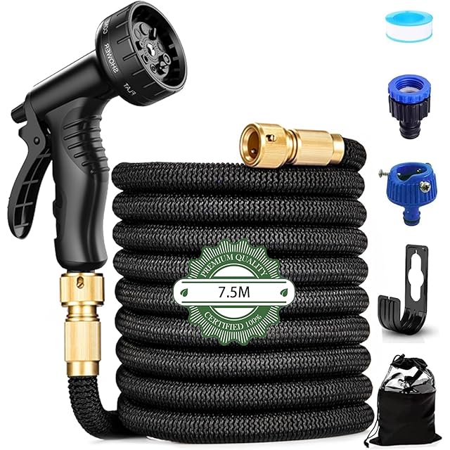 伸縮ホース 洗車 Yihuilan 散水ホース3倍伸びる ホースリール 10in1散水ノズル付き ラテックス内層 超強度外層 耐摩擦性 多くの蛇口対応 収納しやすい 絡まりにくい 水やり 庭 ベランダ ガーデニング ペット浴、ペットバス 掃除用 ガーデン 多機能蛇口継手付き (ブラック, 2.5mから7.5mまで) | ascend