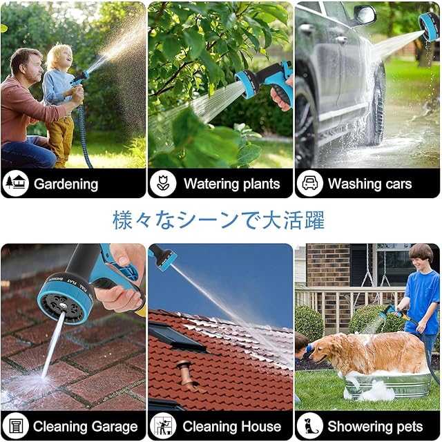 【10種類の散水モードで多用途に活躍】家庭用ホースに10種類の散水機能を搭載。洗車、庭掃除、ベランダ清掃、花壇の水やりなど、幅広いシーンで使用可能。ガーデニング愛好家や家庭用として最適な1本です!