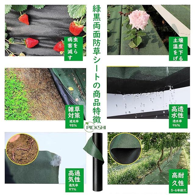 PICKSHI 【緑黒両面】防草シート 0.8*15m 雑草防止シート 130g/m²高密度 5-8年耐久 グリーン 黒両面使い トウモロコシ繊維 PLA製 丸穴設計 高耐久 除草シート 高透水 厚手不織布 草よけシート UV剤入り 紫外線劣化防止 園芸用ぼうそうしーと (130G 80CM*15M) | ascend