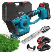 Elikliv 芝刈り機 電動 芝生バリカン 充電式ヘッジトリマー 剪定トリマー コードレス 1台2役 トリマー刈幅220mm 最大切断径7mm バリカン刈幅130mm 両刃駆動 刈込高さ調整15-25mm 二重安全ロック 軽量 生垣 園芸 植木 ガーデンバリカン 大容量バッテリー2個付き | ascend