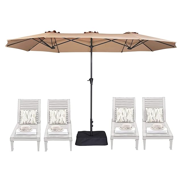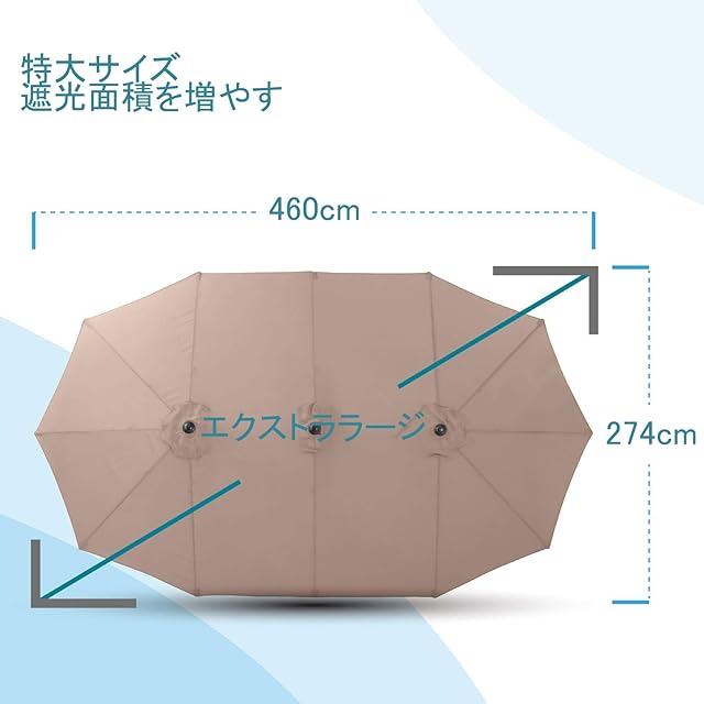 ガーデンパラソル 大型 幅460cm×奥行260cm UVカット 撥水加工 クランク開閉付き サンドバッグベース付き 屋外パラソル モダン おしゃれ カフェテラス オープンテラス キャンプ 夜カフェ (カーキ)