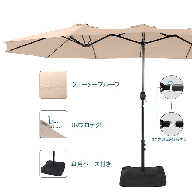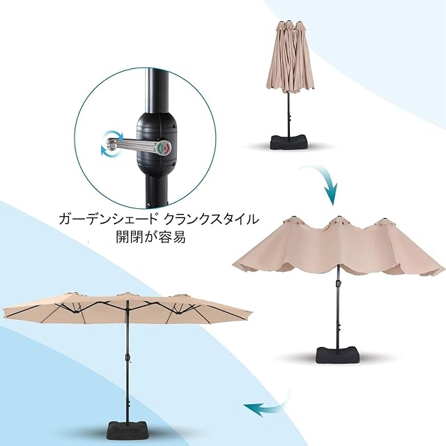 ☂【使いやすさ】:簡単なクランクリフトで、スムーズな開閉が可能です。アンブレラベース付きで、テーブルやサイドパティオの家具と組み合わせても使用可能