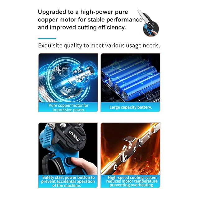 【大容量バッテリーによる持続的な高効率】:2つの大容量バッテリーが搭載された高枝切り電動チェーンソーは、頻繁な充電の手間から解放され、常に高いパフォーマンスを発揮します。高枝切り電動チェーンソーの軽量な構造で操作が便利で、長時間の作業でも疲れません。注意事項:1.連続して10分以上使用した場合は、すぐに停止し、3分間の休憩を取り、機械を冷やしてください。2.電池が完全に充電されていない場合は使用しないでください。そうしないと、電池の寿命が短くなる可能性があります。