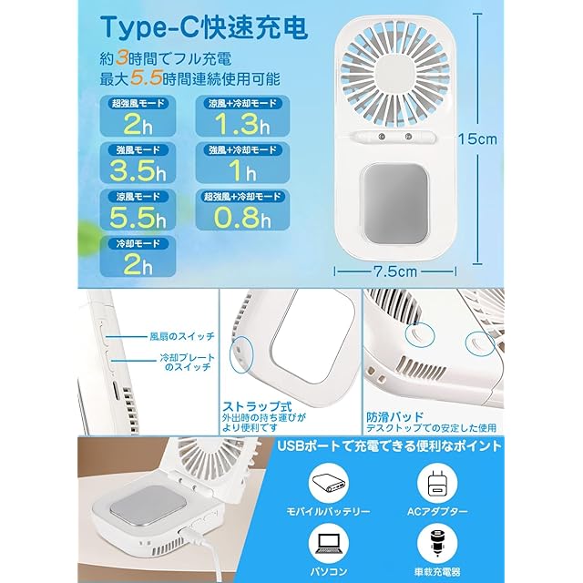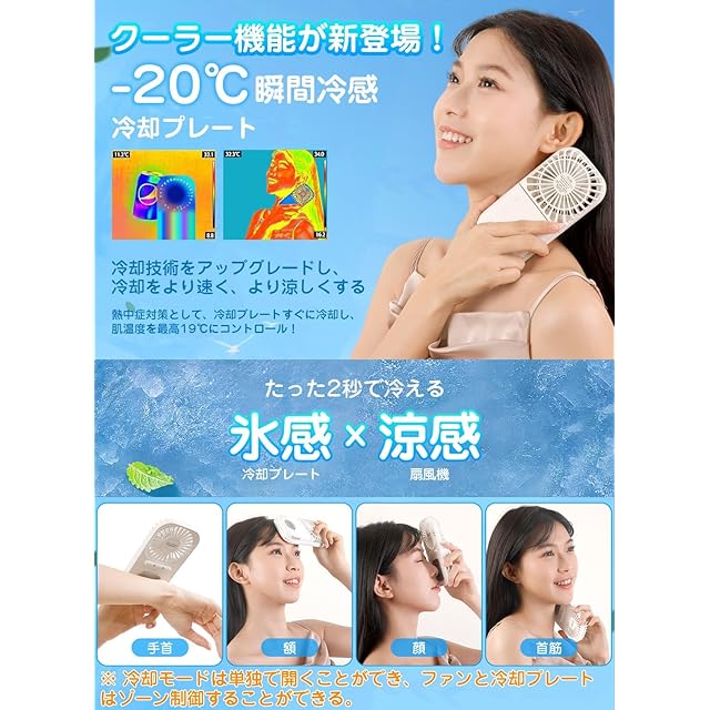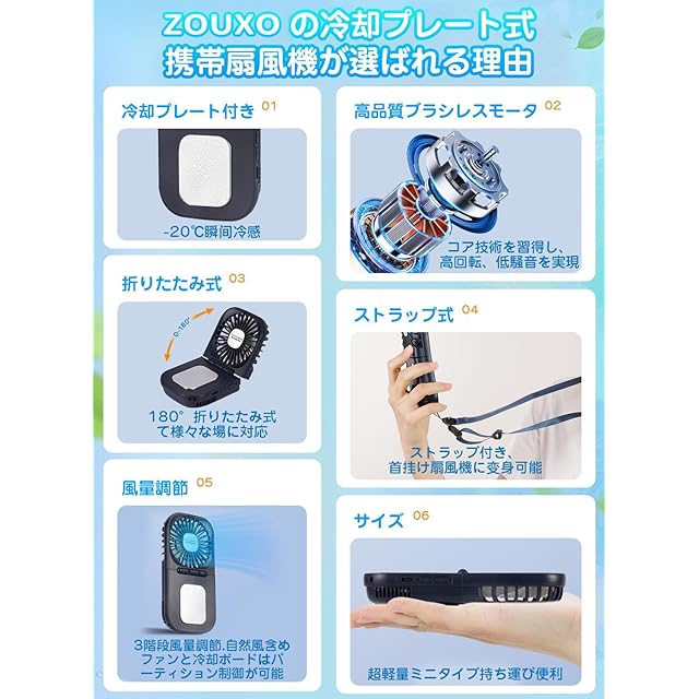 ハンディファン 冷却プレート 扇風機 ハンディ 【2025高級版・1秒冷 却 プレート】ZOUXO 携帯扇風機 手持ち扇風機 冷却プレート付きハンディファン 静音 小型 180°折り畳み式 usb充電式 Type-C 2000mAh 最大5.5時間連続使用 強力 涼しい 三段階 熱中症/暑さ対策 キャンプ/アウトドア/通勤/通学/オフィス/寝る ストラップ付き | ascend