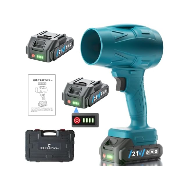 ブロワー PSE認定2個電量表示 21Vバッテリー付きブロアー 充電式 マキタ電池互換 65m/s大風速最強ブロワー 150000rpm 1000g/s推力強力ブロワー 独自専用12個大ファンブレードターボブロワー 80mm風入口洗車 ブロワー コードレス洗車ブロワー 小型ブロワー ミニ激吹きターボファン 洗車水滴吹き飛ばし/除塵/落ち葉/エアコン/バーベキューブロワ 軽量 日本語取扱 ブルー | ascend