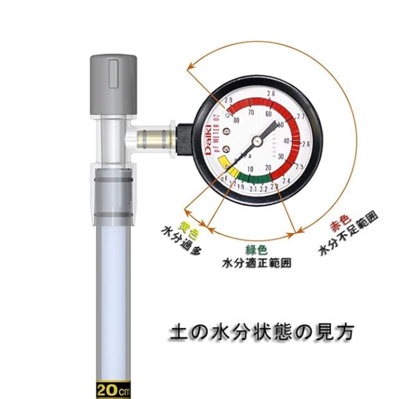 土壌水分計(pFメータ・テンシオメータ)Daiki 20cm用 DIK-8333 植物の水やり・かん水の目安に最適な土壌水分計