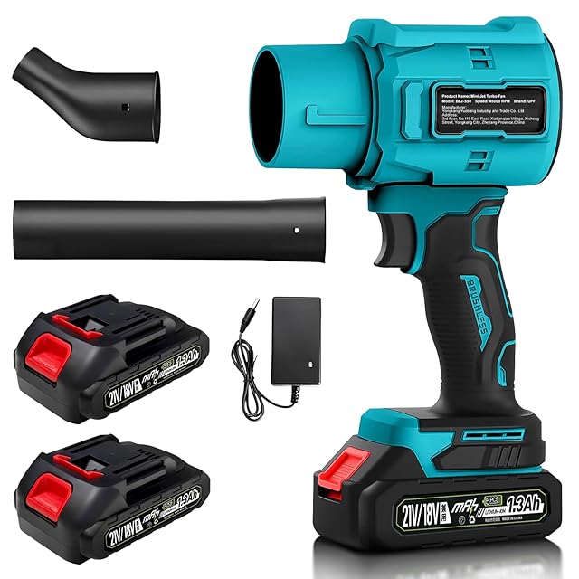 UPF ブロワー 洗車 超強力 2種類のノズル付き エアダスター 電動 380W 高効率 45000RPM 2個バッテリー付き マキタ18V互換バッテリー対応 電動エアダスター 充電式 70MM特大ターボファン コードレス ブロワー 小型 (PC 掃除/キーボード/車内/エアコン/洗車用/水滴/落ち葉の吹飛ばし/庭掃除/除雪等) | ascend