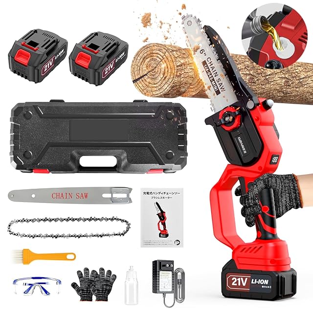【アフターサービス・パッケージ内容】お買い上げ後12ケ月以内に、運送途中での破損や商品本体汚れまたほかの不備がある場合と故障を発生した場合、無償で交換致します。ご連絡の方法:アカウントサービス内の「アカウントサービス」→「注文履歴」→「販売元」→「質問する」から、お気軽にお問合せ下さい。パッケージ内容:バッテリーx2、充電器x1、ソーチェーン(6インチx1+8インチx1)、ガイドバー(6インチx1+8インチx1)、ゴーグルx1、手袋x1、ボトル(オイルなし)x1、ケースx1、日本語取扱説明書x1。