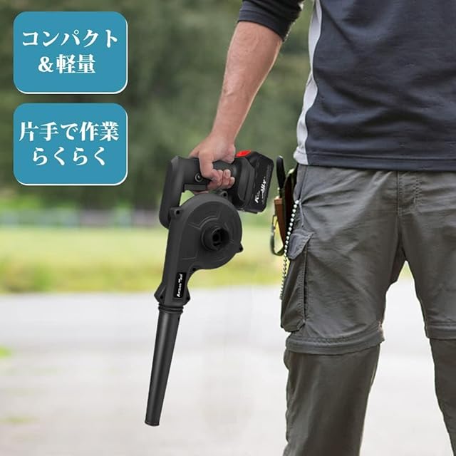 アルチザンツール【日本ブランド】充電式ブロワーストロングブラック黒セット ONスイッチロック機能付きコードレス 1台2役 吹き飛ばし 吸塵機能付き 18Vマキタバッテリー使用可能 落ち葉 洗車の水飛ばし バーベキュー 窓の隙間 庭の掃除 ソファ 3000mAh バッテリー付き 即使用可能フルセット マキタ互換品 | ascend