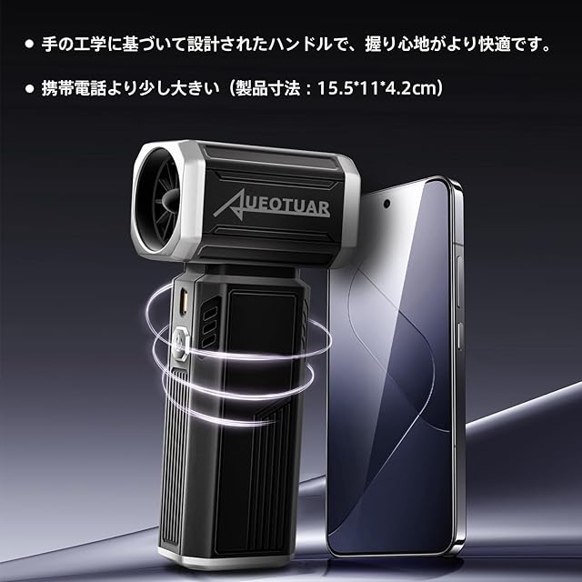 【超強風速 110m/sを超える暴風級】AUEOTUAR コードレス 電動エアダスター ブロワー 220000RPM 無段階風量調整 家庭用 小型で強力 PSE認定 6000mAh大容量バッテリー コードレス 充電式 Type-C急速充電 エアダスター 高硬度 高効率 高出力 高温耐性 多用途(PC 掃除/キーボード/車内/エアコン/洗車用等)