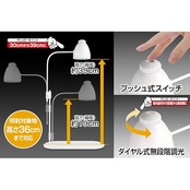 照射角100度、無段階調光が可能です。高さ36cmまでの容器に対応します。