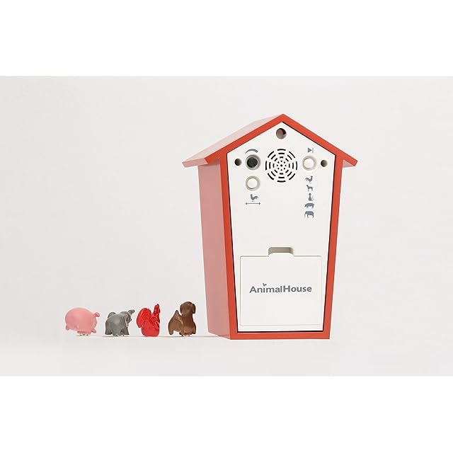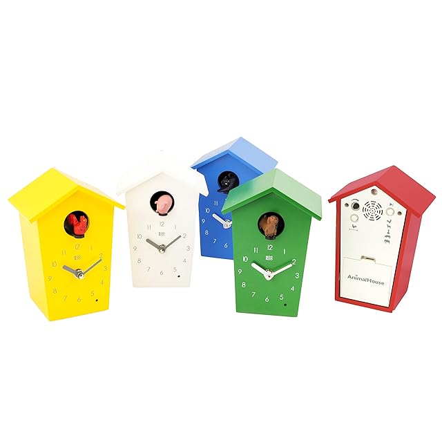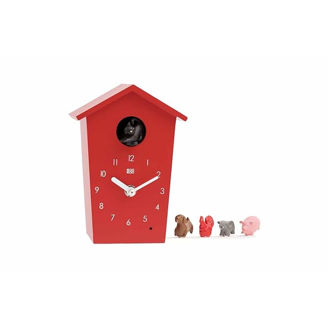 KOOKOO(クークー)アニマルハウス 赤色 農場での5匹の動物の鳴き声が楽しめる素晴らしい小さな鳩時計 自然の中で録音 モダンでしゃれたデザイン 癒される音