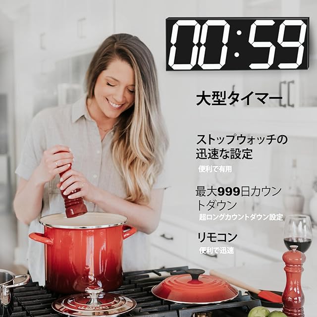 CHKOSDAデジタルLED時計 壁掛け 18インチ大型目覚まし時計 リモコンカウントアップ/カウントダウンタイマー時計 自動調光器 ビッグカレンダーと温度計 と大型デジタル掛け時計(ホワイト) | ascend