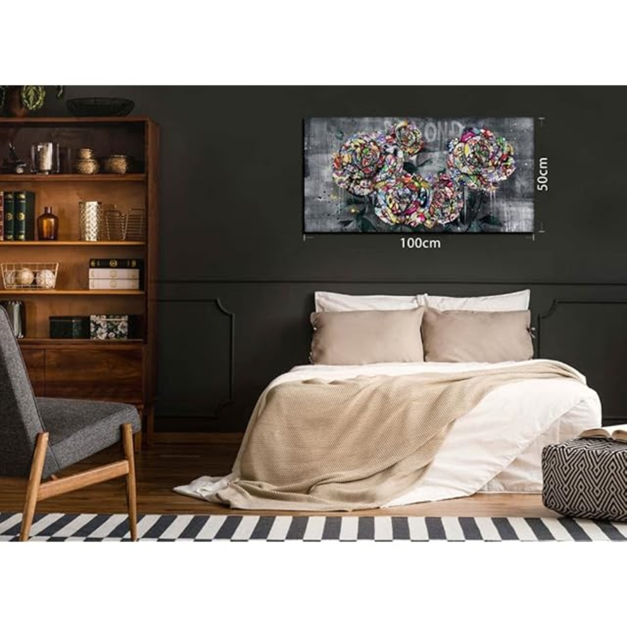 ARTJOY Graphical Art 5roses アートパネル 50cm 100cm 薔薇の絵 インテリア 壁掛け アート ポップアート 絵画 花 ローズ グランジ (5roses) | ascend