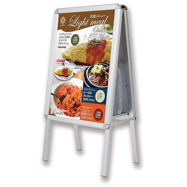 この看板はパネル枠にはアルミニウムを採用している為丈夫です。更にペットボトルを置くトレーの材質にもスチール、アルミニウムを使用して強度を持たせています。人気の木製枠転倒防止シリーズよりも材質の点で耐久性が高い商品となっています。