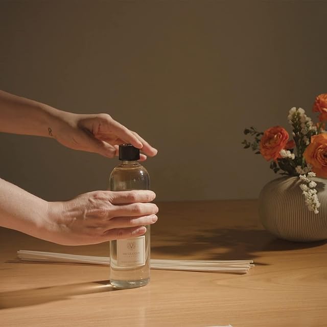 [香りをお楽しみいただくために]お手持ちのDR. VRANJESのディフューザーボトルに詰め替えてご使用いただくディフューザー専用のフレグランスリフィルです。お気に入りの香りはぜひリフィルをご用意いただき、ディフューザーボトルが空になってしまう前にリフィルからボトルへつぎ足しながらお楽しみください。フレグランスの蒸発を防いでバランスを保ち、安定した香りをお楽しみいただくためにも、ディフューザーボトルのカーブしたあたりまで液体が満たされている状態がオススメです。※2.5Lボトル用スティック1セット(13本・長さ60㎝)をお付けいたします。
