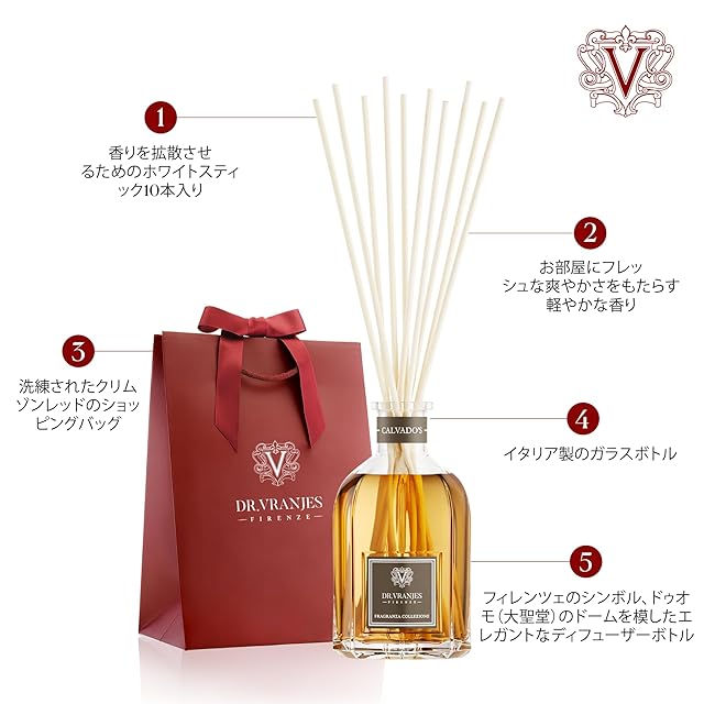 【直営】DR. VRANJES –ドットール・ヴラニエス ディフューザーCALVADO’S〈カルバドス〉250ml ルームフレグランス リードディフューザー エレガントなオリジナルショッピングバッグ付き メイドインイタリアー モチーフはアップルブランデー・カルバドス リンゴやコリアンダーが紡ぐ気品溢れる深みのあるフルーティーノート 琥珀色が美しいフレグランス | ascend