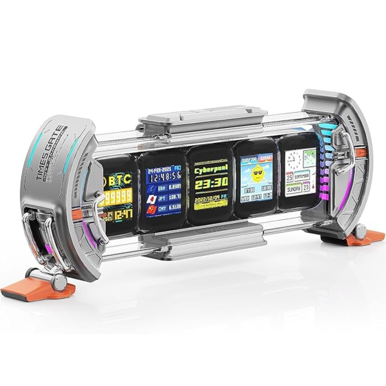 【Divoom Times Gate】サイバーパンクデジタルクロックは未来技術の領域からインスピレーションを得ており、単なるデジタルクロックを超越しています。5つのフルカラーLCDディスプレイを搭載し、128x128の鮮やかなピクセルアートや活気あるアニメーションGIFを特徴としており、ゲーミングルームやオフィスに独自のビジュアルエキストラバガンザをもたらします。