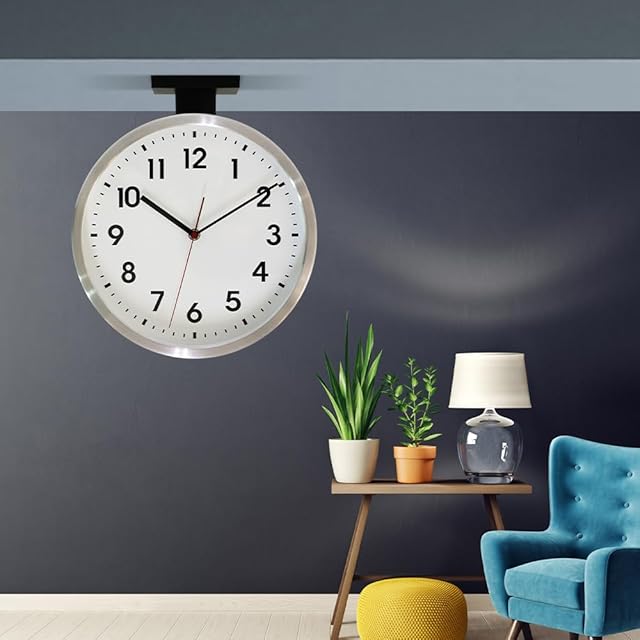 ベスタイム(BESTIME) 66296B 両面壁掛け時計 掛け時計 銀いアルミニウム 白い文字盤 高さ32x幅28x10cmキッチン リビング 玄関 ベッドルーム 居間 書斎 図書館 オフィス。 | ascend