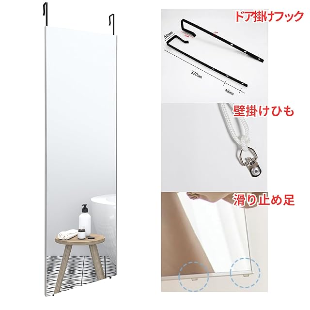 ✅ 特徴1 【スペースを取らない】ドア掛けミラーは、壁に取り付ける必要がないため、スペースをとることがありません。特に、狭い部屋や限られたスペースのある場所では、ドア掛けミラーは非常に便利です。引き戸やクローゼットのドアにも取り付けることができます。また、ドアに引っ掛けるだけで簡単に取り付けることができます。そのため、必要に応じて簡単に移動することができます。