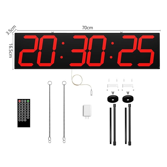 多機能と多用途:この大きなデジタル時計は、使用するために吊り下げられ、吊り下げられる必要があり、我々はインストールに必要な付属品と説明書を提供します。吊り下げ両面時計は、時間、日付、温度を表示することができ、それはまた、カウントダウンとストップウォッチ機能を含むタイマーとして使用することができます。また、アラーム機能を使用する必要がある場合、それはあなたを助けることができ、アラームの16セットまで設定することができます。両面デザインと多機能により、学校、病院、ショッピングモール、地下鉄駅、バス停など、さまざまな公共の場所に適しており、通行人に必要な情報を提供しながら、さまざまな環境にうまく溶け込むことができる。