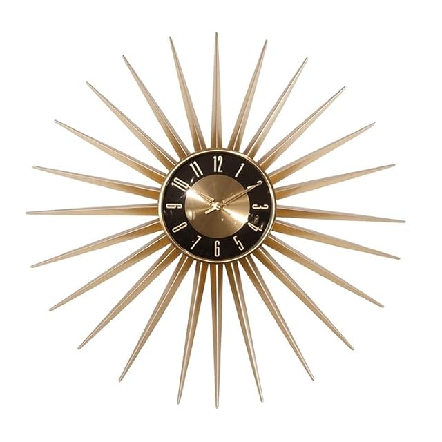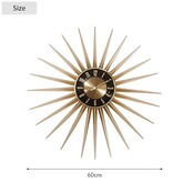 鈍い金色を放つ、まるで太陽のような壁掛け時計。<BR>曇りの日でもなんだか心を明るくしてくれます。<br /><br />■サイズ:φ60cm<br />■材質:アルミニウム<br />■脚部:<br />■組立区分:組立なし<br />■備考:単三電池1本付属