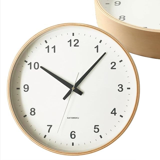 KATOMOKUの「plywood wall clock」。加藤木工株式会社は一つ一つ手作りのものづくりをしております。当社の曲げわっぱは北海道にある「札鶴ベニヤ株式会社」で製造していただいたplywoodを弊社にて曲げわっぱに加工しております。詳しくは「http://www.katomoku.jp/mage-wappa.html」に加工手順がを記載しています。プライウッド掛け時計の木枠を材料の加工から日本で行う、日本唯一の時計製造メーカーとしてこれからも頑張っていきたいと思います。少しでも長く使っていただきたいという想いから故障の少ないアナログタイプのムーブメントを使用しています。またスイープタイプのため音もほとんどありません。
