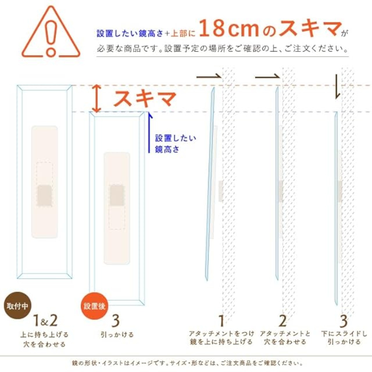 トイレ・玄関・洗面など、家の中にあるわずかな壁に収まる、省スペースなスリム設計。好きなところに、好きなだけ鏡のある暮らしをお楽しみいただけます。