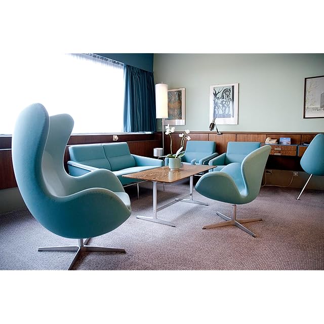 アルネ ヤコブセンの長いキャリアの功績は、建築や家具だけでなく、幅広いグラフィック デザインにも及びます。アルネ ヤコブセンが手がけたグラフィック デザインには、書体、パッケージ、ポスター、パターン、時計などがあり、そこから、1941年に発表された『STATION』が誕生しました。 SAS ロイヤル ホテル (現在のラディソン コレクション ロイヤル ホテル) の606 アルネ・ヤコブセンスイートルームに飾られている、AJカトラリーやステルトンのコーヒーポットなどの不朽の名作の多くも、同じようにグラフィックデザインから製品化されています。 そして2024年、アルネ ヤコブセンが手がけたグラフィック デザインに敬意を表し、 アルネ・ヤコブセン財団、ROSEHDHAL社と共に、606 アルネ・ヤコブセンスイートルームの鮮やかなブルーグリーンを掛け時計ステーションにて表現した『STATION ROYAL BLUE』をリリースする事となりました。