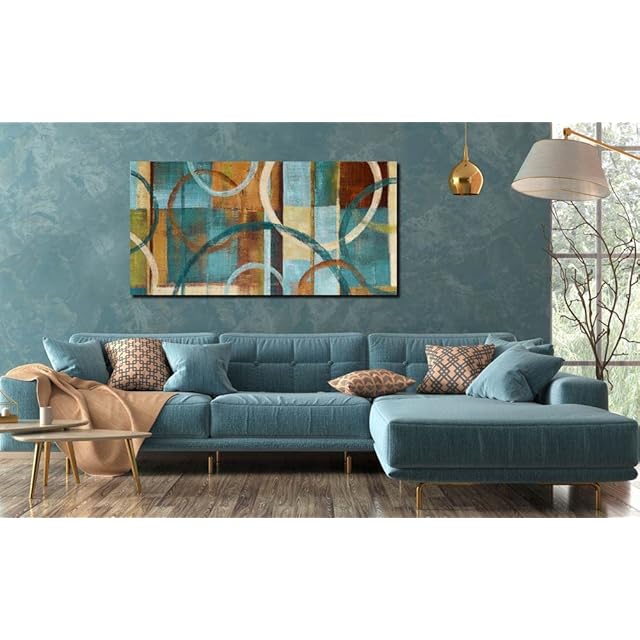 東京アートラボ BWA 絵画 インテリア バーニッシュウォールアート 100cmx50cm アートパネル アートボード 抽象 北欧風 油絵 (Connected Circles no.1) | ascend