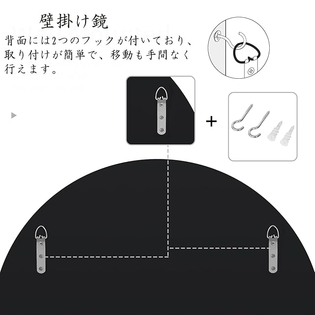 【取り付け簡単】背後には3つのフックがあり、取り外しも簡単にできるため、引越しなど鏡を移動させたい時も、手間なく鏡を設置し直すことができます